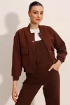 0688 Çift Cepli Bomber Ceket - Kahverengi