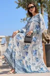 Kol Büzgülü Çiçek Desen Elbise
