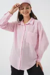 20153 Tek Cepli Oversize Keten Gömlek - Fuşya