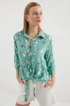 20243 Önü Bağlamalı Desenli Gömlek - Siyah