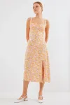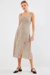 2282 Yırtmaçlı Askılı Viskon Elbise - Çok Renkli