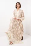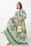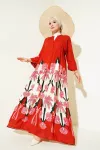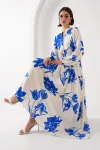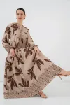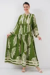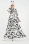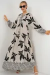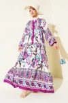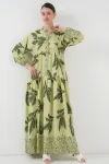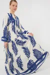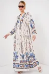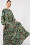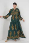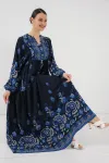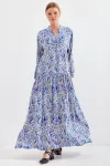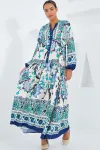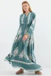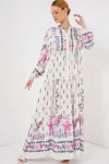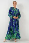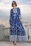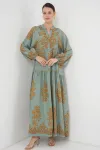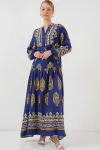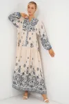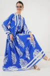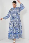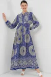 2423 Otantik Desenli Tesettür Elbise - Buz Mavi
