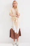 2504 Desenli Kısa Kol Viskon Elbise - Krem
