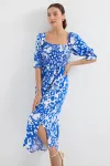 2512 Desenli Yırtmaçlı Elbise - Saks