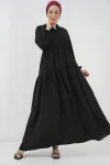 2527 Kadın Uzun Tesettür Elbise - Siyah
