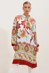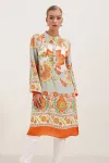 5903 Desenli Viskon Elbise - Turuncu