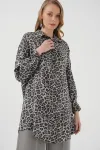 5944 Desenli Uzun Gömlek Tunik - Siyah