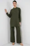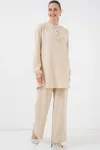 6678 Keten Tunik Pantolon İkili Takım - Bej