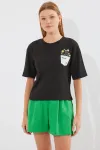 912 Baskılı Örme Basic Tişört - Siyah