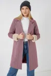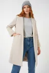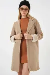 9145 Kadın Kolları Tüylü Balık Sırtı Kaşe Kaban - Bisküvi
