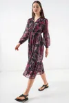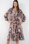 Desenli Sifon Elbise 2137ÜRÜNÜMÜZ MANSETLIDIR.