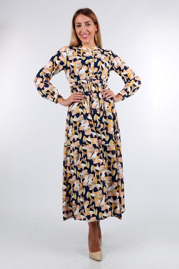 Desenli Hakim Yaka Elbise HZL22W-BD121441