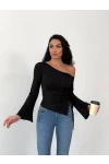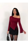 Kadın Bordo Asimetrik Kesim İspanyol Kol Beli Büzgülü Sandy Bluz HZL25W-FRY123591