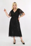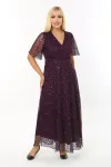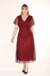 Kadın Bordo Büyük Beden Kruvaze Yaka Payetli Abiye Elbise HZL26S-PR11171