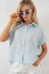 Kadin Çizgili Kisa Kol Gömlek