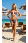 Kadın Çok Renk Desenli Boyundan İp Bağlamalı Üçgen Bikini Takımı HZL25S-LC5005