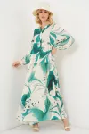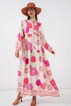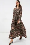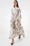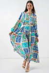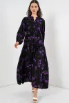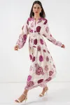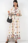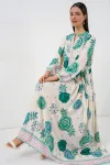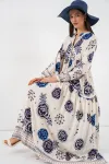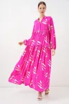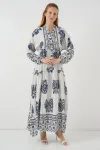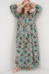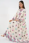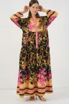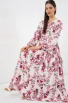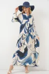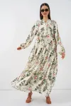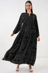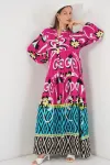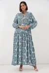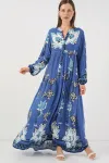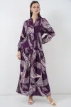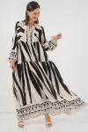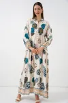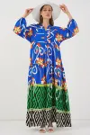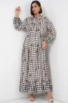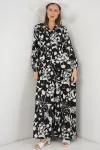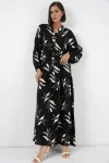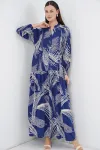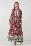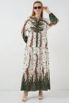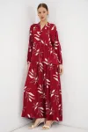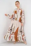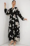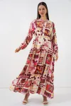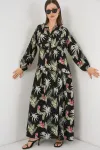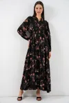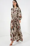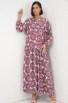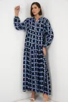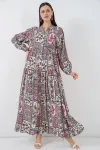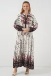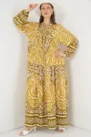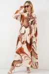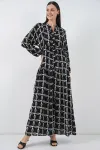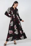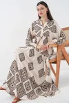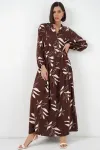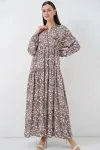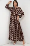Kadın Desenli Uzun Tesettür Elbise 2585 - F.KAHVE