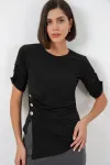 Kadin Dügme Detayli Sandy Bluz 992Not: Ürün Vücuda Oturan Kaliptir.