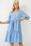 Kadın Düğmeli Kısa Kol Elbise 2559 - E.Yeşil