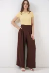 Kadın Geniş Paça Pileli Pantolon 6718 - Krem
