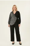 Kadın Gümüş Siyah Büyük Beden Payet Detaylı Pantolon Bluz Abiye Takım HZL26W-PR10011