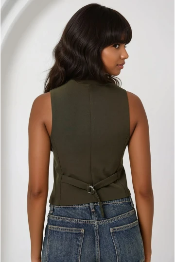 Kadın Haki Düğmeli Astarlı Yelek HZL25S-BD167961