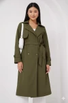 Kadın Hardal Kruvaze Yaka Kuşaklı Astarlı Trençkot HZL25W-BD159181