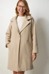 Kadın Hardal Tek Düğmeli Çift Cepli Astarlı Şık Kaşe Kaban HZL23W-BD190851
