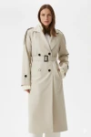 Kadın Krem Kruvaze Yaka Astarlı Kemerli Mevsimlik Trençkot HZL25W-BD159411