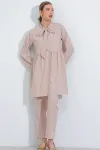 Kadın Krem Örme Pantolon Tunik Alt Üst Takım 6654