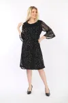 Kadın Lacivert Büyük Beden İspanyol Kol Astarlı Transparan Dantel Şık Abiye Elbise HZL26S-PR11151