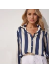 Kadın Lacivert Krem Çizgili Saten Gömlek HZL23S-BD1201731