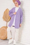 Kadın Tesettür Lila Saç Örgü Desen Uzun Düğmeli Rahat Kesim Triko Hırka HZL24W-BD1100691
