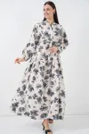 Kadın Lilyum Kumaş Uzun Tesettür Elbise 2593 - Gri