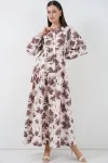 Kadin Lilyum Kumas Uzun Tesettür Elbise 2593
