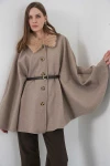 • Yakası Kürklü Düğmeli Kemerli Kaşe Panço  Standart Bedendir.