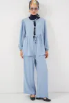 Kadın Önü Bağcıklı Tunik Pantolon İkili Takım 6744 - Mavi