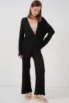 Kadın Örme Bluz Pantolon İkili Takım 30052 - Siyah