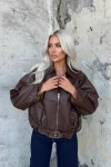 • Kadın Siyah Fermuar Kapamalı Oversize Suni Deri Ceket