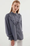 Kadın Siyah Fırfır Detaylı Uzun Kollu Şık Gömlek HZL25W-BD1202231