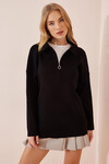 Kadın Siyah Polo Yaka Fermuarlı Oversize Triko Kazak  HZL23W-BD1101441