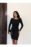 Kadın Siyah Uzun Kollu İp Bağlamalı Sırt Dekolteli Kaşkorse Mini Elbise HZL25W-FRY120411