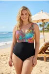 Kadın Siyah Yeşil V Yaka Büyük Beden Mayo HZL25S-LC4008
