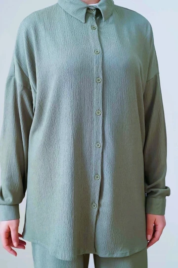 Kadın Tesettür Zümrüt Yeşili Geniş Kalıp Alt-Üst İkili Örme Takım HZL24W-BD158581