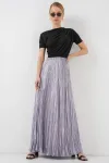 Kadın Uzun Kırışık Parlak Etek 8034 - Zümrüt Yeşili