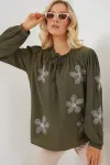 Kadın Uzun Kol Nakışlı Örme Bluz 951 - Haki