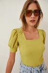 Kadın Yağ Yeşili Kare Yaka Örme Bluz HZL22W-BD104091