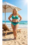 Kadın Yeşil Lacivert Puantiyeli Büyük Beden Astarlı Bikini Takım HZL26S-LC21202-6