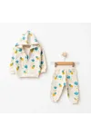Kız Bebek Ananas Desenli Sweatshirt Pantolon T-shirt 3 lü Alt Üst Bebek Takımı 3Ay - 36Ay
