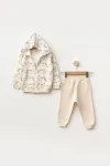 Kız Bebek Animal Desenli Sweatshirt Pantolon T-shirt 3 lü Alt Üst Bebek Takımı 3 Ay-36 Ay